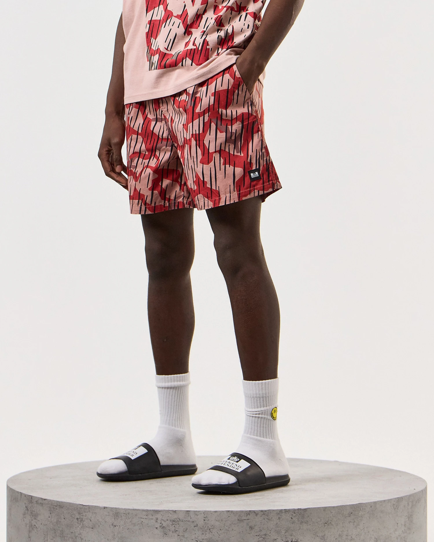 Summer shorts made from 100% woven Cotton and screen printed with our own disruptive rain camo print.