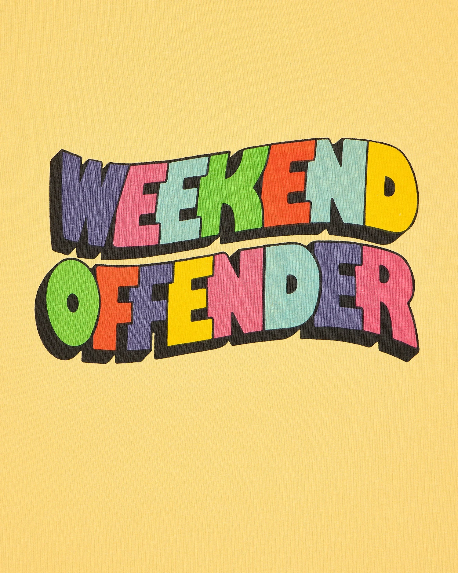 Graphic t-shirt with a typographic graphic with a nod to the Happy Mondays Pills N Thrills artwork.