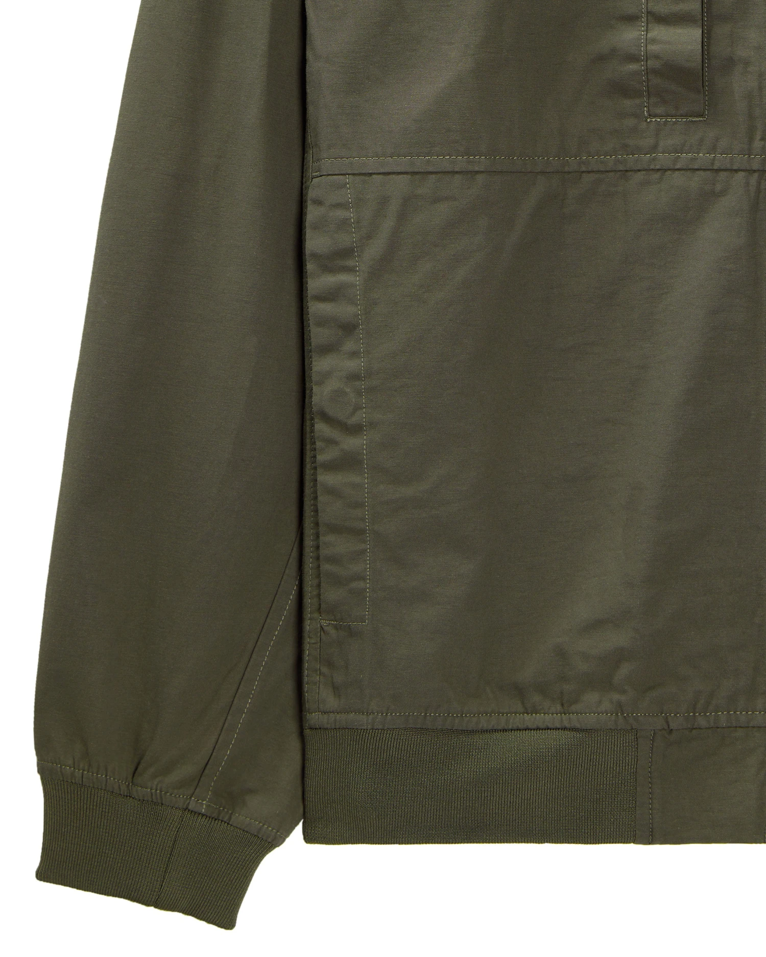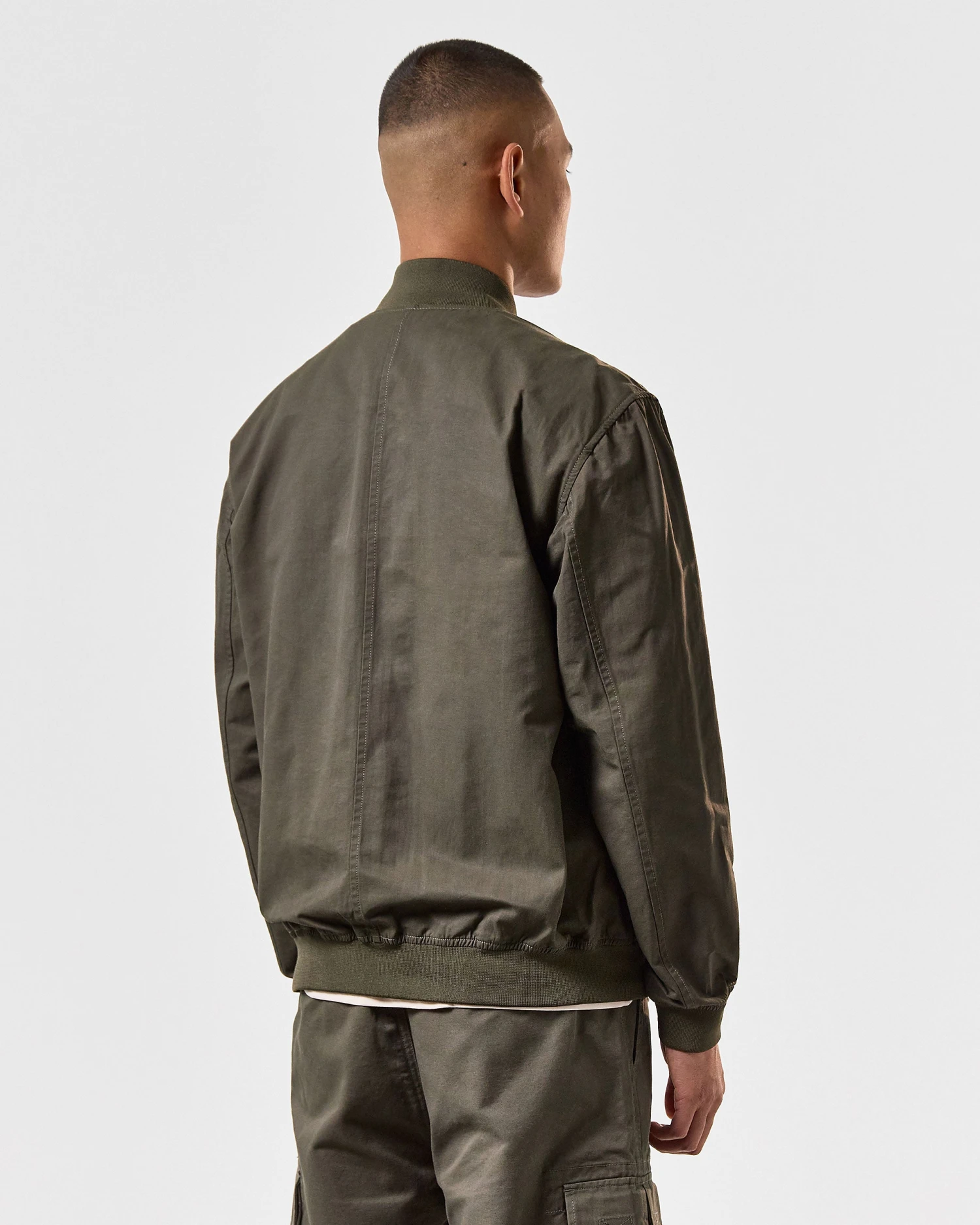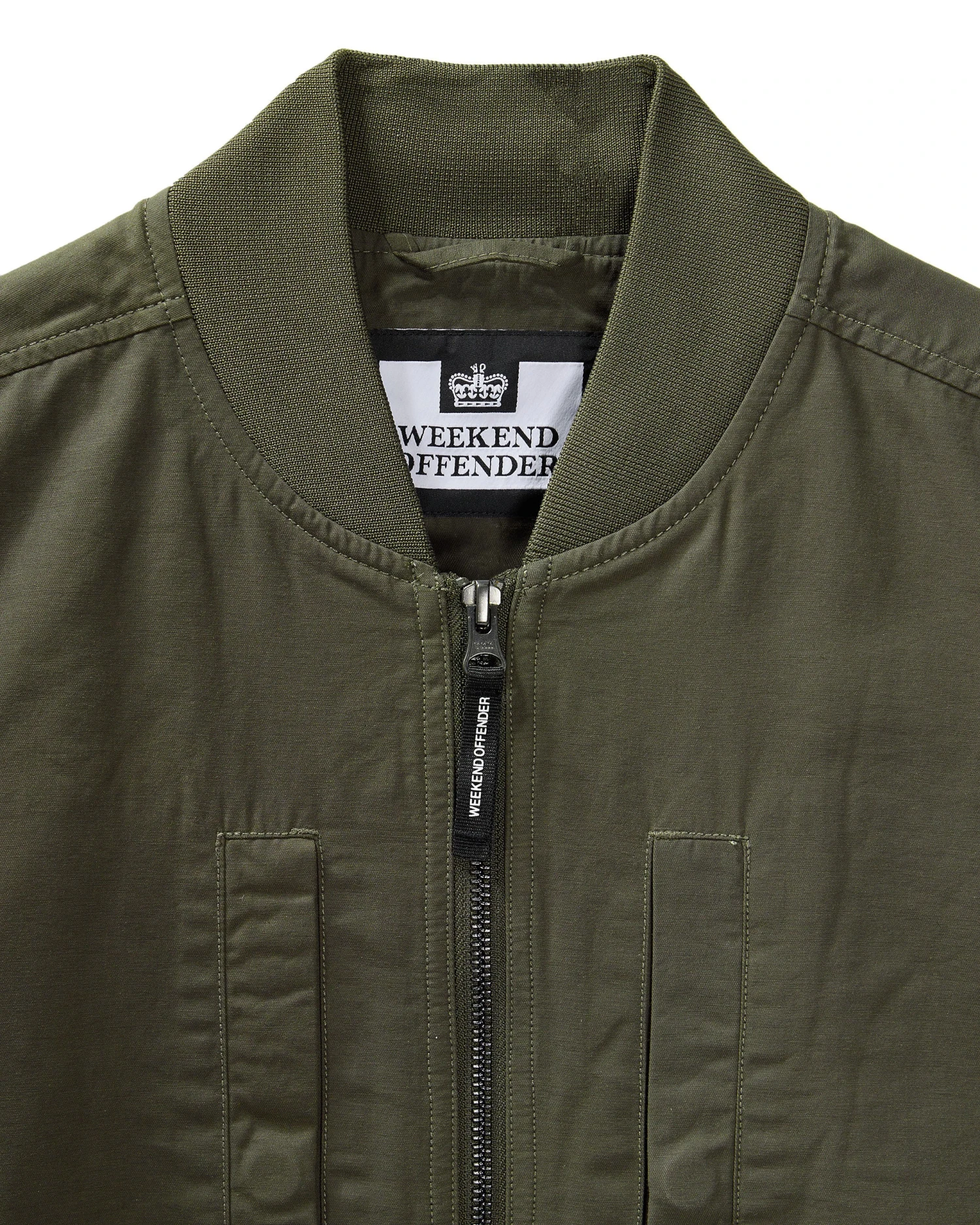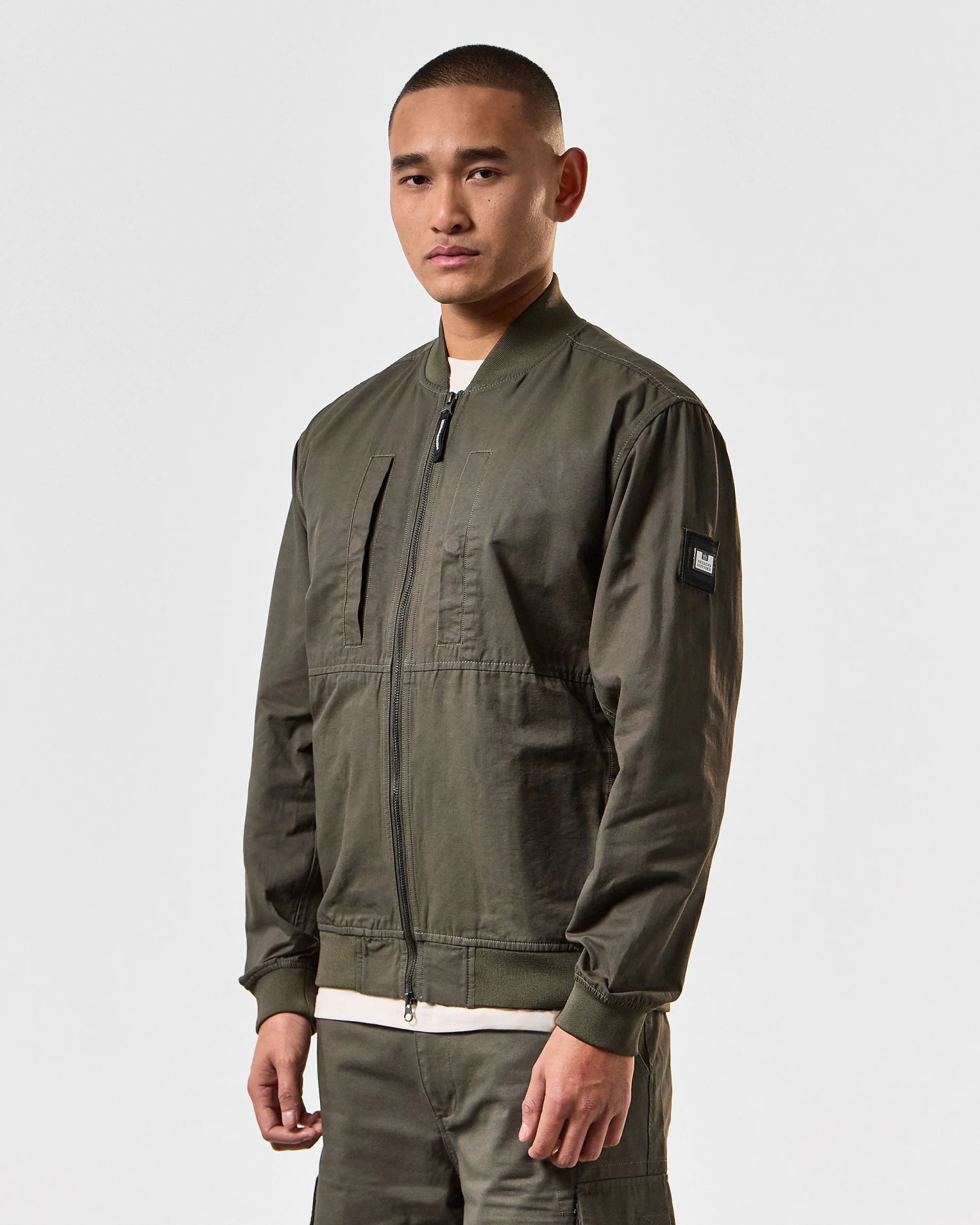 WO bomber jacket specially woven from ultra fine Cotton for a tight weave fabric with increased strength and durability and a matte finish.