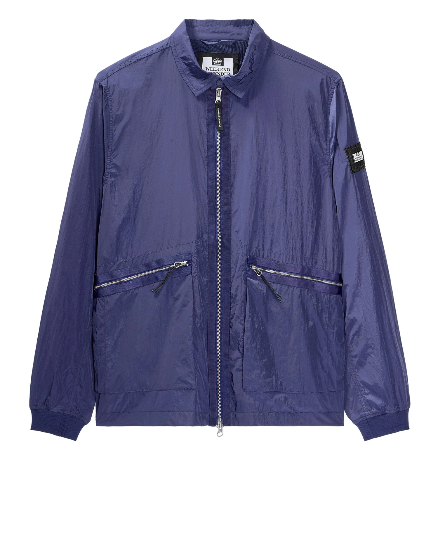 WO staple over-shirt made from a lightweight high density woven 100% Nylon parachute style fabric with a lightly reflective surface. Treated with an additional DWR (Durable Water Repellent) coating.